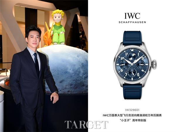 活动期间,王阳佩戴大型飞行员双向精准调校万年历腕表“小王子”周年特别版(型号:IW329601)。该腕表搭载全新IWC-ProSet®双向精准调校技术,首次采用完全同步的齿轮系设计,可实现日历双向无缝调校,令万年历调校变得前所未有的便捷与直观;其月相显示精度亦再度突破,每1,040年误差仅为一天。深蓝色表盘搭配镀铑立体时标与数字,指针亦经镀铑处理,时标和指针均覆有Super-LumiNova®夜光涂层。